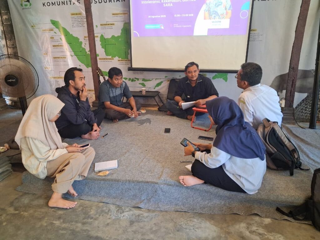 Yogyakarta, 26 Agustus 2025 – Mitra Wacana Yogyakarta menyelenggarakan kegiatan Focus Group Discussion (FGD) Lintas Identitas dengan tema “Merespon Kasus Intoleransi, Kekerasan, dan Isu SARA”. Kegiatan ini berlangsung pada Selasa, 26 Agustus 2025, bertempat di Sekretariat Gusdurian Yogyakarta, dan dihadiri oleh berbagai unsur organisasi lintas iman serta lembaga keagamaan, di antaranya Forum Kerukunan Umat Beragama (FKUB), Yayasan Kristen Untuk Kesehatan Umum (YAKKUM), Lembaga Dakwah Islam Indonesia (LDII), Generasi Muda Penghayat Kepercayaan terhadap Tuhan YME Yogyakarta (GEMA PAKTI), Gusdurian, dan Bimbingan Masyarakat Hindu (BIMAS Hindu).