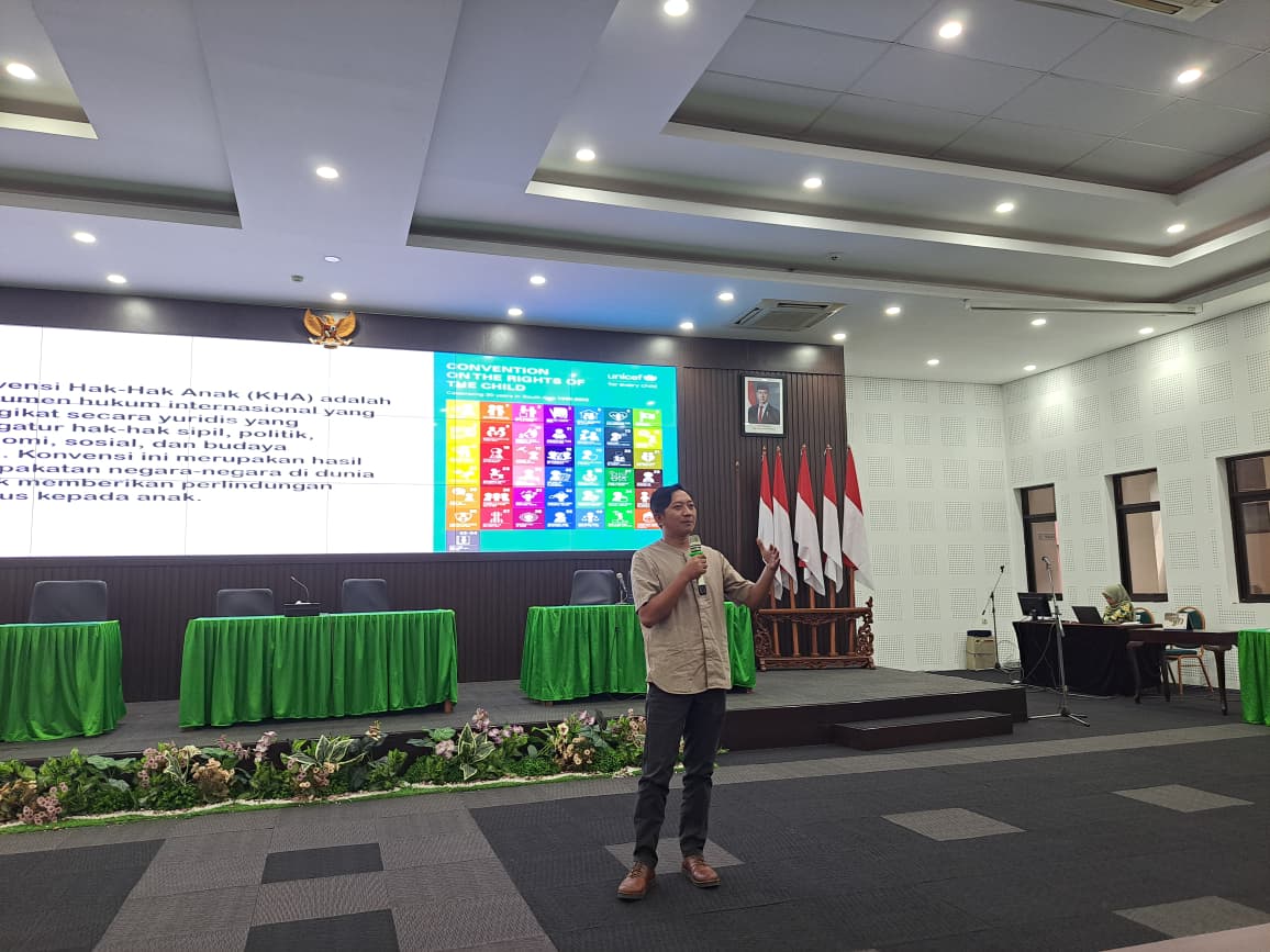 Kulon Progo, 26 Februari 2026 – Dinas Sosial Pemberdayaan Perempuan dan Perlindungan Anak Kabupaten Kulon Progo menggelar Pelatihan Konvensi Hak Anak pada Kamis (26/2) di Aula Adikarto Gedung Kaca Kompleks Pemerintah Kulon Progo. Kegiatan ini menghadirkan Muazim dari Mitra Wacana sebagai narasumber utama. Pelatihan ini diikuti oleh 80 peserta yang terdiri dari unsur pemerintah daerah, pemerintah kapanewon se-kabupaten Kulon Progo, institusi kesehatan, lembaga Pendidikan, tokoh lintas agama, organisasi masyarakat sipil seperti PKK dan forum anak, hingga unsur TNI/Polri dan media massa.