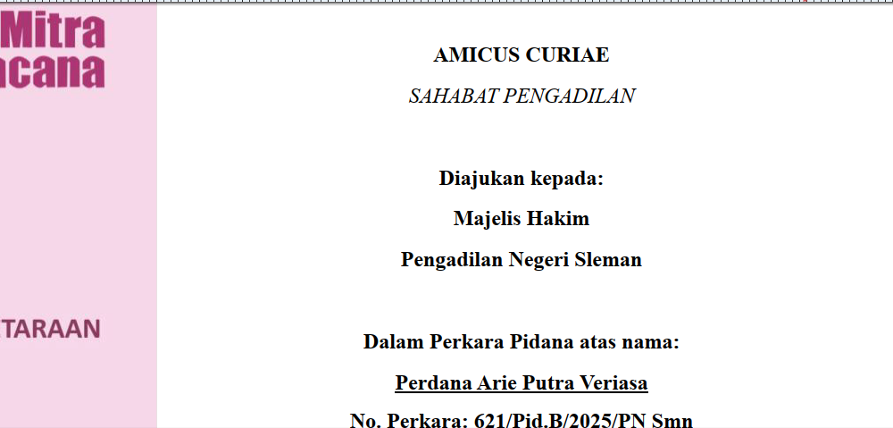 Lindungi Ruang Sipil dan Demokrasi: Perkumpulan Mitra Wacana Ajukan Amicus Curiae Tuntut Keadilan bagi Perdana Arie Putra Veriasa